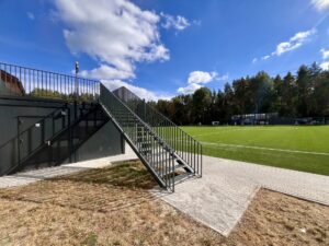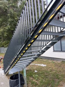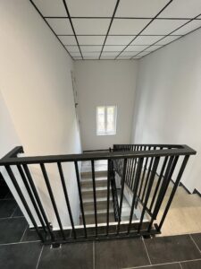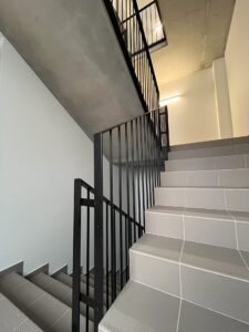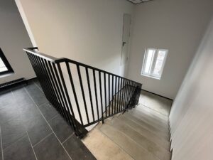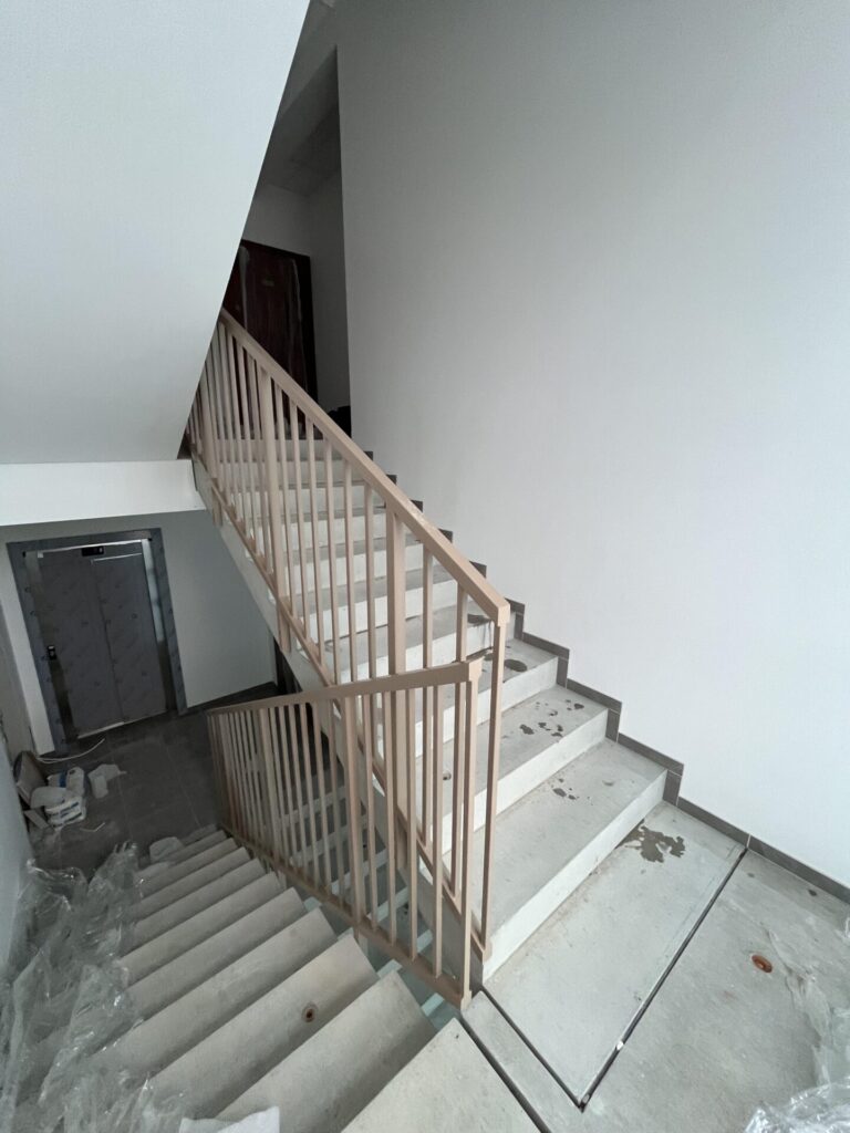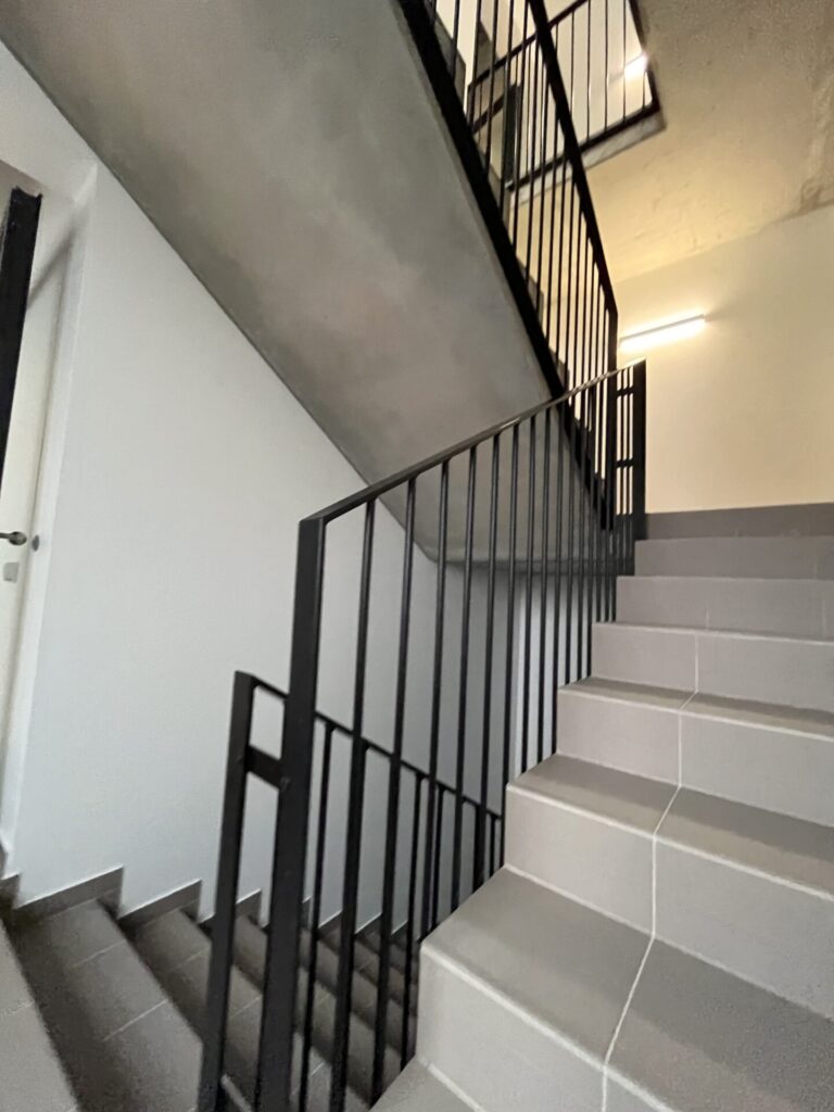 Kiekvieni turėklai derinami prie faktinių laiptų matmenų – jokios improvizacijos objekte.